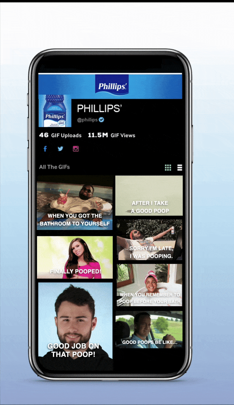 We created a branded GIPHY page with all of our “Good Poop Feeling” GIFs, as well as an Instagram Sticker pack for everyone on the Internet to remind themselves to take the time to treat themselves to a good poop.